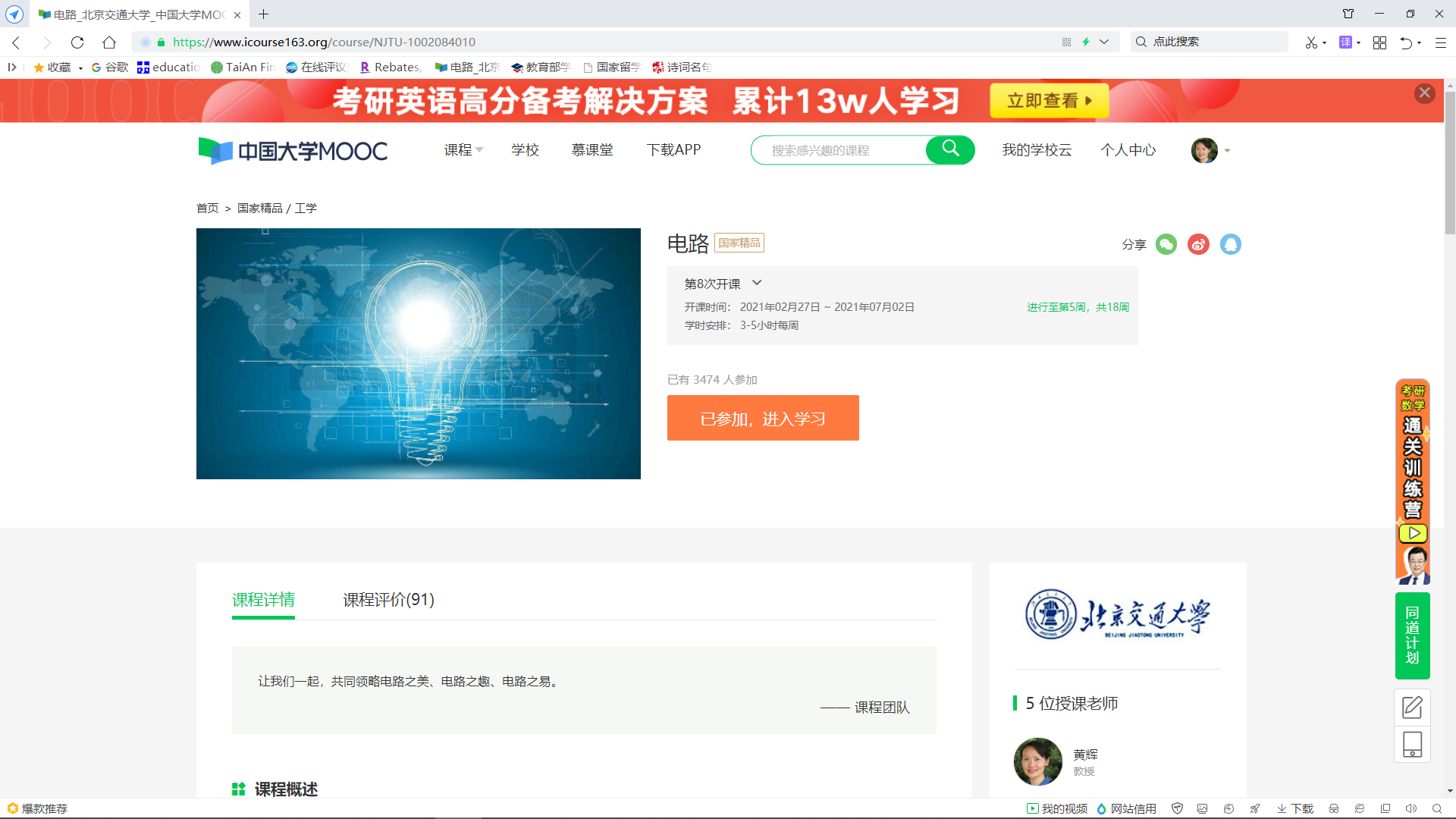 此电路MOOC课程,因教学内容凝练,重点突出,讲解深入浅出,承上启下,科学性和通俗性兼备,受到其他高校师生的青睐。