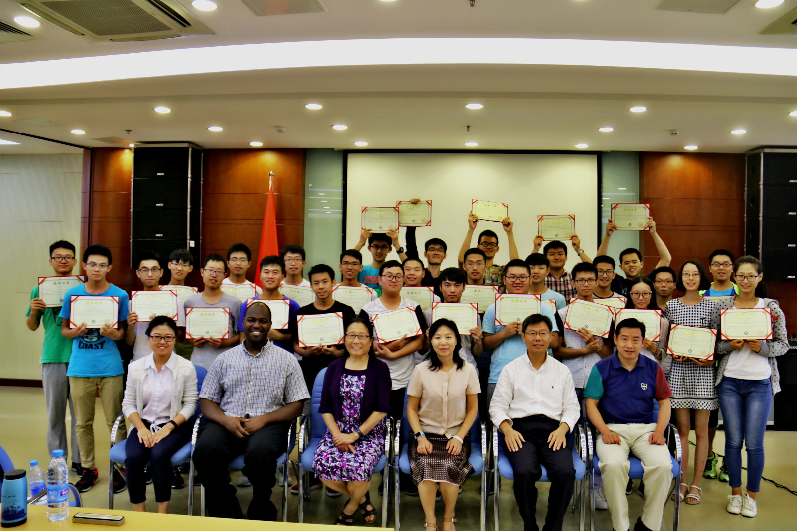 8月28日下午,44118太阳成城集团汉能新能源学院2016暑期英语浸润营闭营仪式在机械楼多功能厅举行,44118太阳成城集团经理和敬涵、汉能新能源学院副经理张沛、教师代表李爱华、都平、Nick French和“新能源1601”班新生参加了闭营仪式。仪式由汉能新能源学院副经理张沛主持。