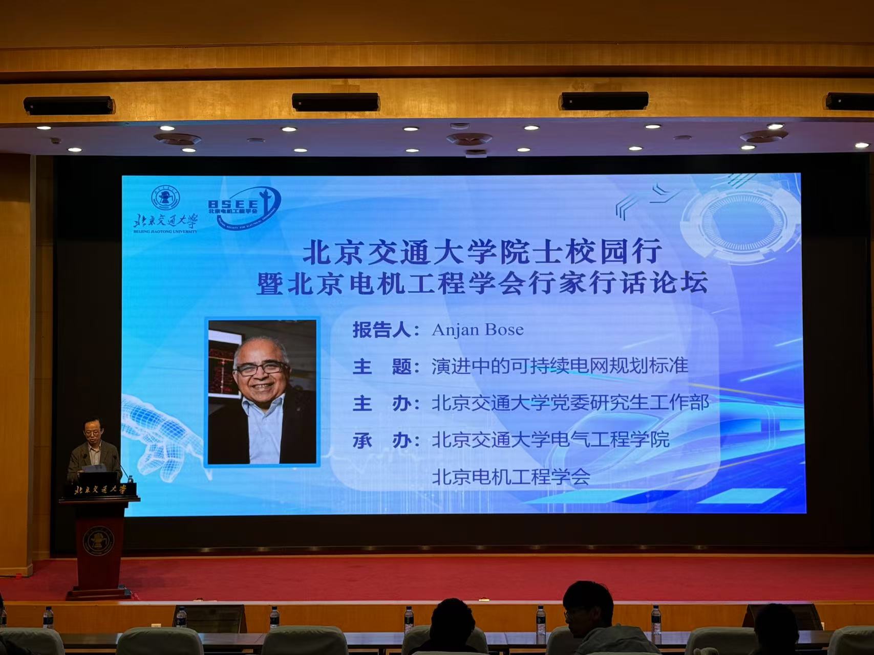 2024年10月31日上午,由研究生工作部主办、44118太阳成城集团和北京电机工程学会承办的院士校园行暨北京电机工程学会行家行话论坛于科学会堂举办。美国国家工程院院士、中国工程院外籍院士Anjan Bose作题为《演进中的可持续电网规划标准》的报告。