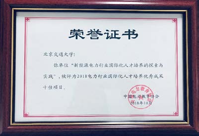 “新能源电力行业国际化人才培养的探索与实践”项目,被中国电力教育协会评为“2018 电力行业国际化人才培养优秀成果十佳项目”