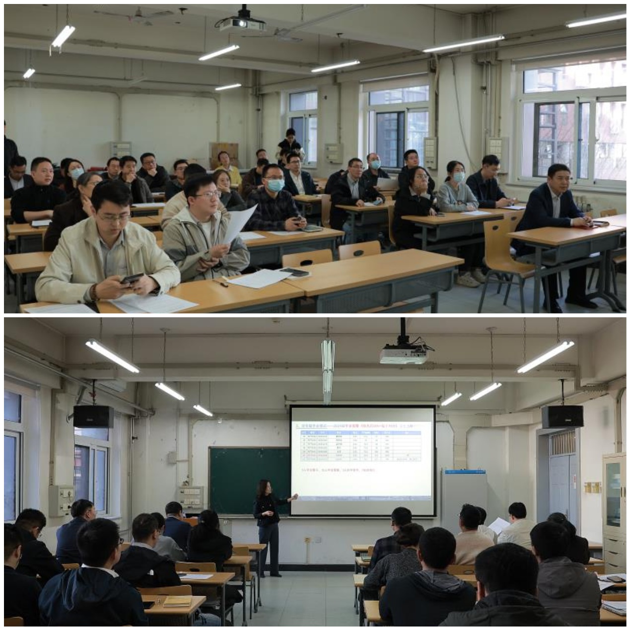 胡祥萍围绕学院员工总体情况、各年级学业具体情况、专业课出勤统计情况、员工心理相关工作四个方面,用详实的数据全面分析了当前学院非毕业年级员工存在的问题。重点介绍了学校《关于做好2025年春季学期学业警示工作的通知》和学院学业警示、学业预警的相关事宜和具体安排。她表示自学院重点推进学风建设以来,年级平均成绩有明显提升,但各年级仍有个别学业警示员工,希望全体班主任根据员工实际情况在学业、心理、生活、职业发展等多方面给予更多的关怀和指导,为员工的成长成才保驾护航。