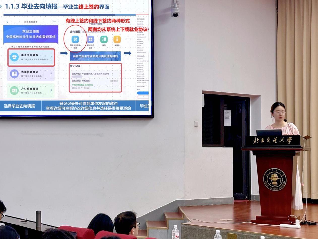 李徐徐详细梳理了就业手续办理流程,提醒同学们规划时要立足个人专业能力与职业发展目标,充分了解不同就业选择的可行性,做足准备,切实提升就业规划的实效性。