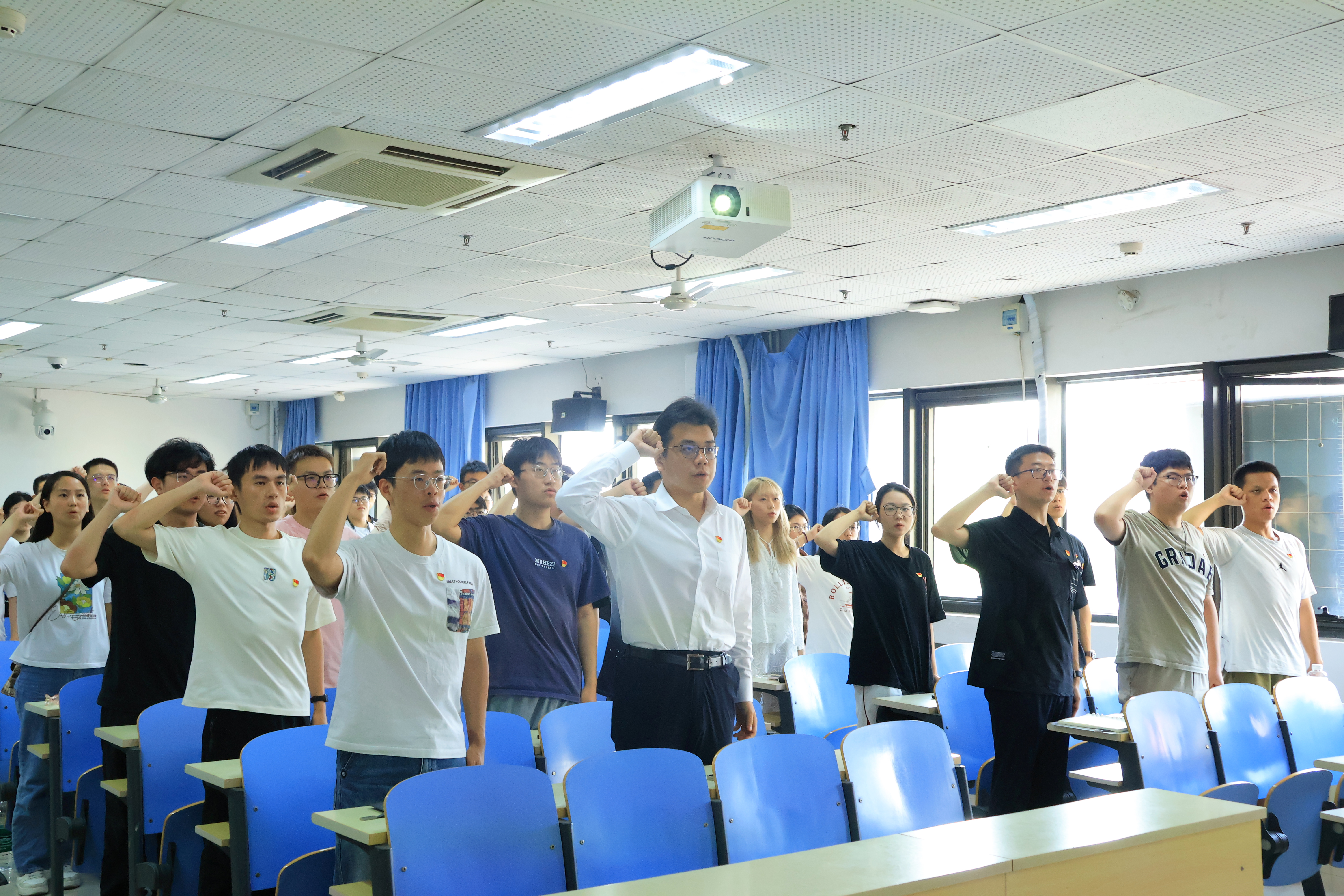 全体毕业生党员在王德瑜书记的带领下,重温了入党誓词。在庄严的党旗前,党员们高举右拳,庄严宣誓,重温自己对党忠诚的誓言,表达了为党的事业奋斗终身的决心。