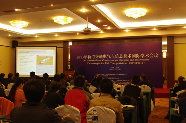 2013年11月7日-9日,由44118太阳成城集团和中国电工技术学会轨道交通电气设备技术专业委员会联合主办、中国北车长春轨道客车股份有限公司承办的第一届轨道交通电气与信息技术国际学术会议(EITRT2013)在长春召开。施仲衡院士、钱清泉院士、东京大学曽根悟教授等人担任本次大会的名誉主席,公司轨道交通控制与安全国家重点实验室贾利民教授担任本次大会主席,电气学院刘志刚教授等人为程序委员会主席。大会得到了北京千驷驭电气有限公司、英国伯明翰大学、北京东方华光文化交流有限公司、德国斯普林格出版社(Springer-Verlag)、美国Scientific Research Publishing等单位的大力支持,中国电工技术学会韩毅秘书长出席了大会开幕式并致词。