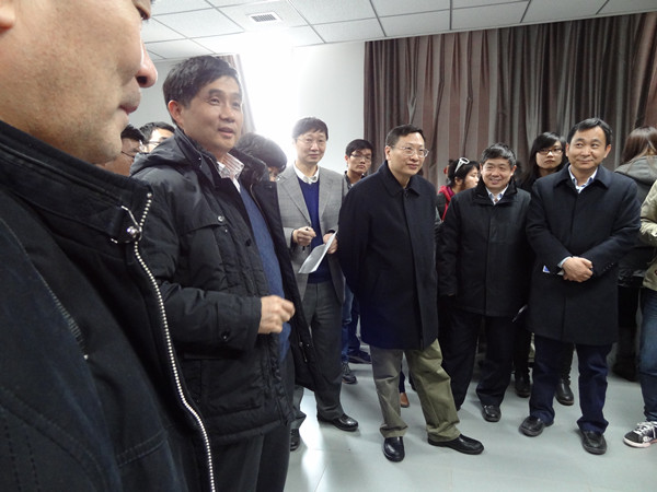 创新训练项目成果展示期间,恰逢校领导视察员工活动中心。曹国永书记、宁滨董事长参观了员工作品,观摩了员工演示,对同学努力的成果和表现出的创新意识给予了高度评价,并寄予殷切希望。宁董事长勉励同学们跨学科组织团队,提升创新训练作品的质量和水平。