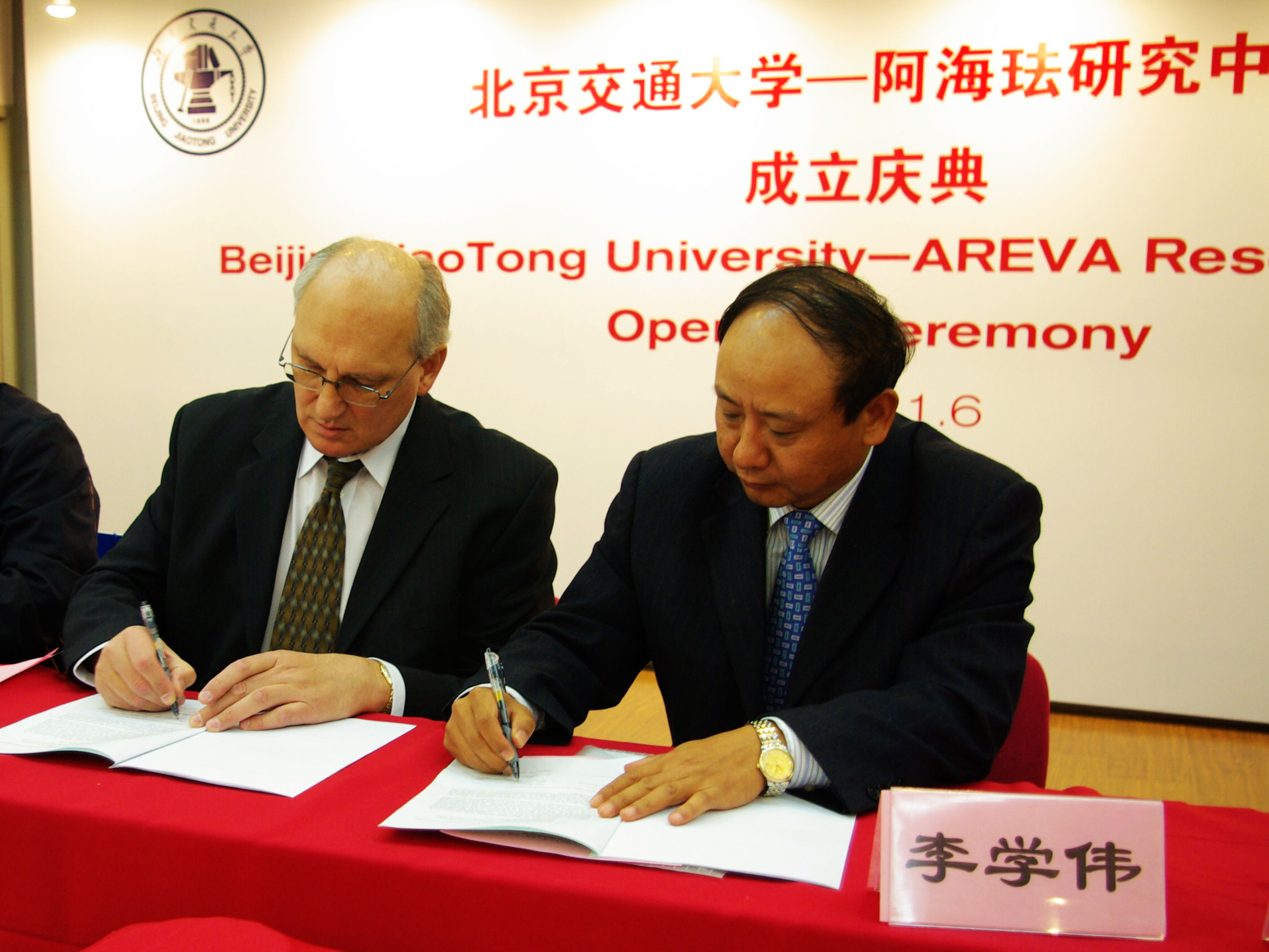 法国AREVA集团是世界500强企业之一, AREVA输配电是世界三大主要输配电集团之一,是从事能源业务的全球性专业化集团“研究中心”和“培养基地”是继今年一月双方签署的科研项目合作之后的进一步交流与合作。由李学伟副董事长和Andrew Klimek先生代表双方签署了合作协议并共同为“研究中心”和“培养基地”揭牌。公司国际交流与合作处邓新华副处长,研究生院刘志刚副经理,电气学院领导以及相关教师也参加了庆典。