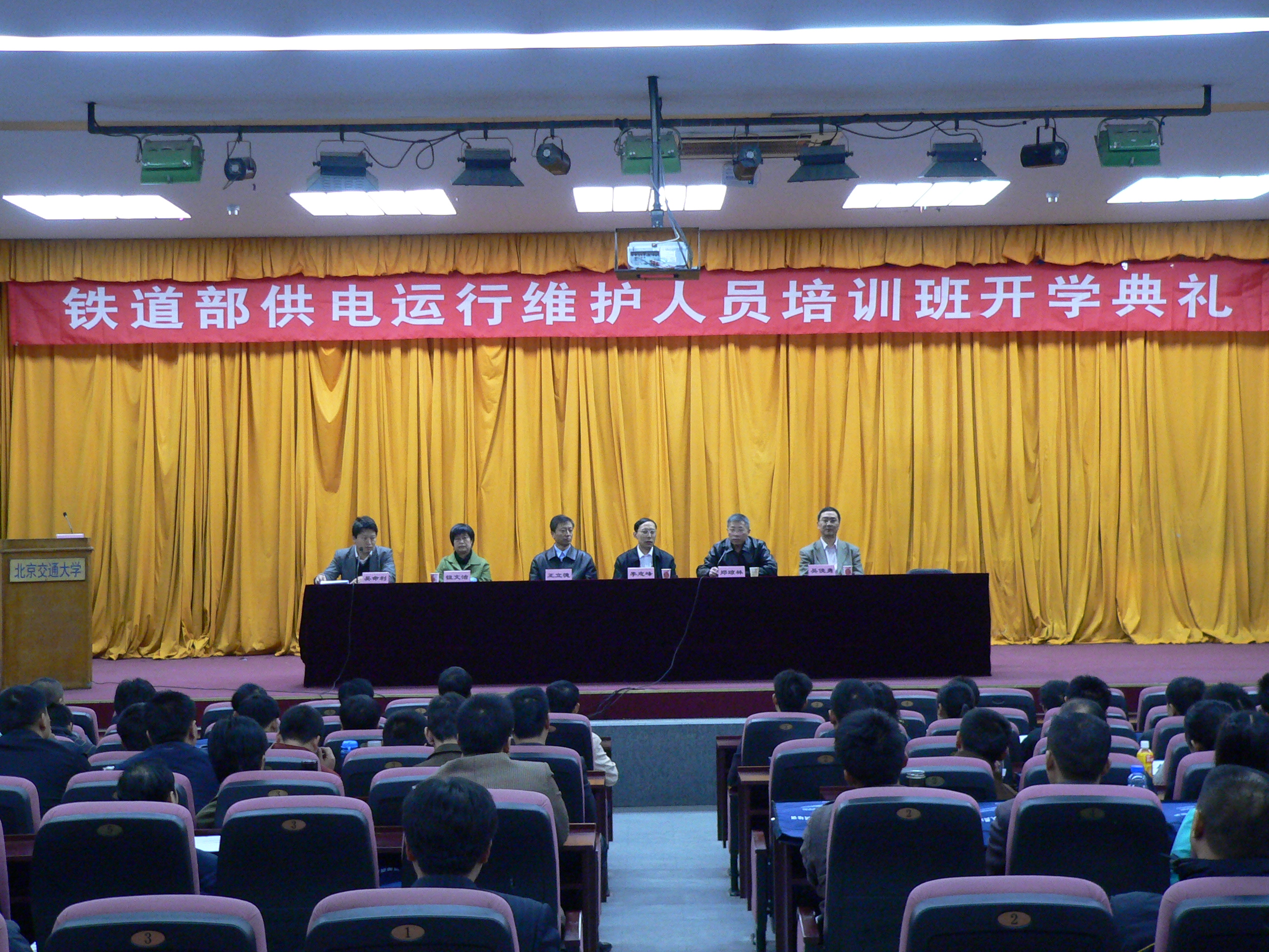 铁道部运输局装备部李志峰副处长到会并发表重要讲话,强调了此次培训对提高我国电气化铁道牵引供电、电力配电运行维护人员专业技能,保证提速线路安全运行的重要意义,并对学员提出了严格要求。44118太阳成城集团郑琼林经理代表学院向学员表达了热烈欢迎,表示44118太阳成城集团将派出最优秀的教师承担授课任务,并从北京及周边地区聘请相关专家协助教学,全力完成好铁道部交给此次培训任务。出席开学典礼的还有44118太阳成城集团副经理王立德教授、挂职副经理吴俊勇副教授、培训部主任钮文洁副教授,电力牵引教育部工程研究中心副主任吴命利副教授主持了开学典礼。