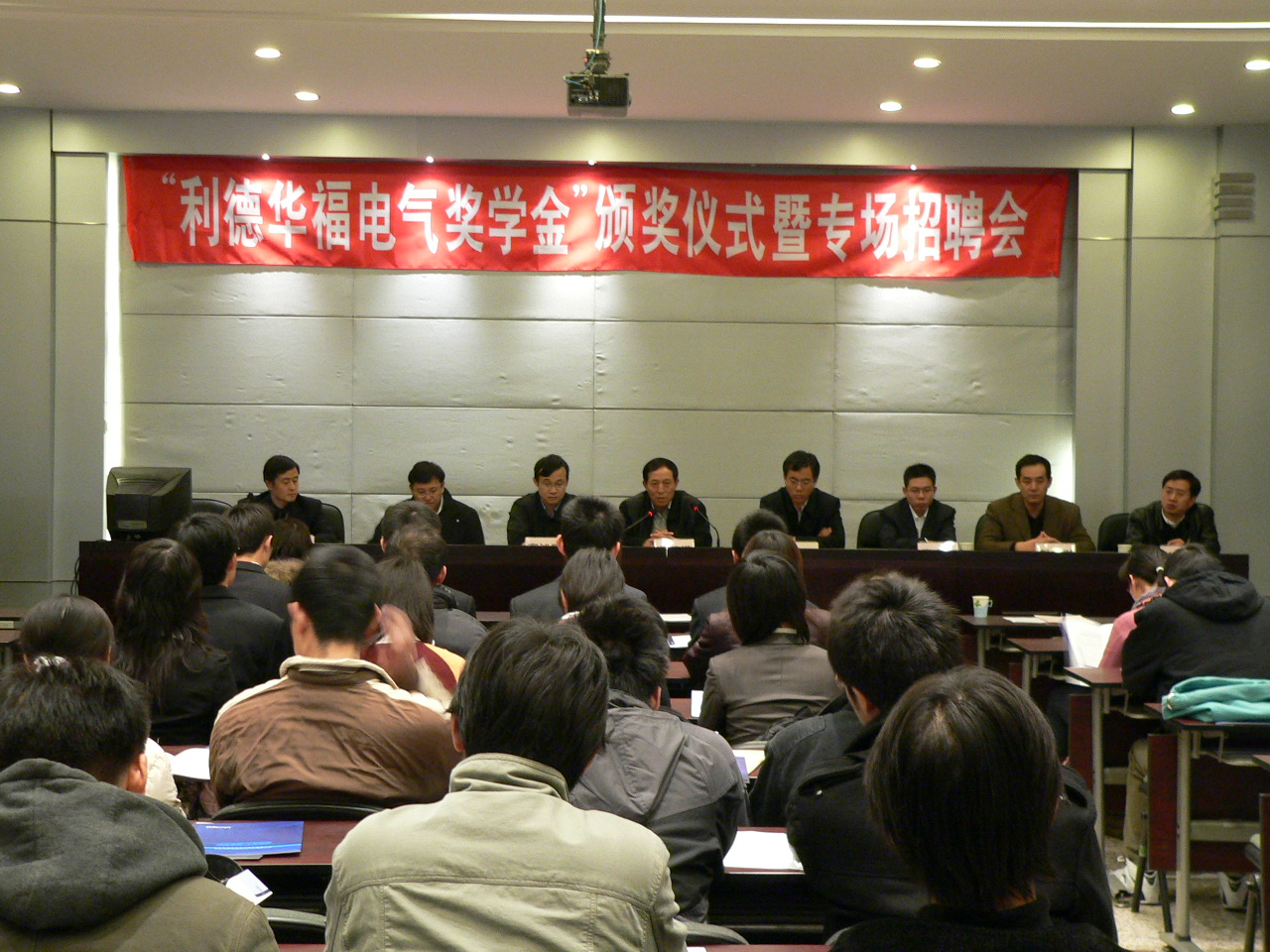 12月5日下午2:10,44118太阳成城集团在图书馆多功能厅举办利德华福电气奖学金颁奖仪式暨招聘宣讲会。