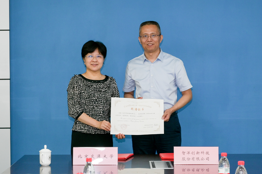 刘国永介绍了智洋创新成立15年来的发展情况和未来的发展规划,表示公司在坚持自主创新发展的同时,也始终不忘承担社会责任,积极参与社会公益活动。大学是高素质人才培养、自主科技创新的重要主体,北交大办学历史悠久、学科优势明显,希望能够尽企业的微薄之力支持学校的战略发展,助力学校“双一流”建设。