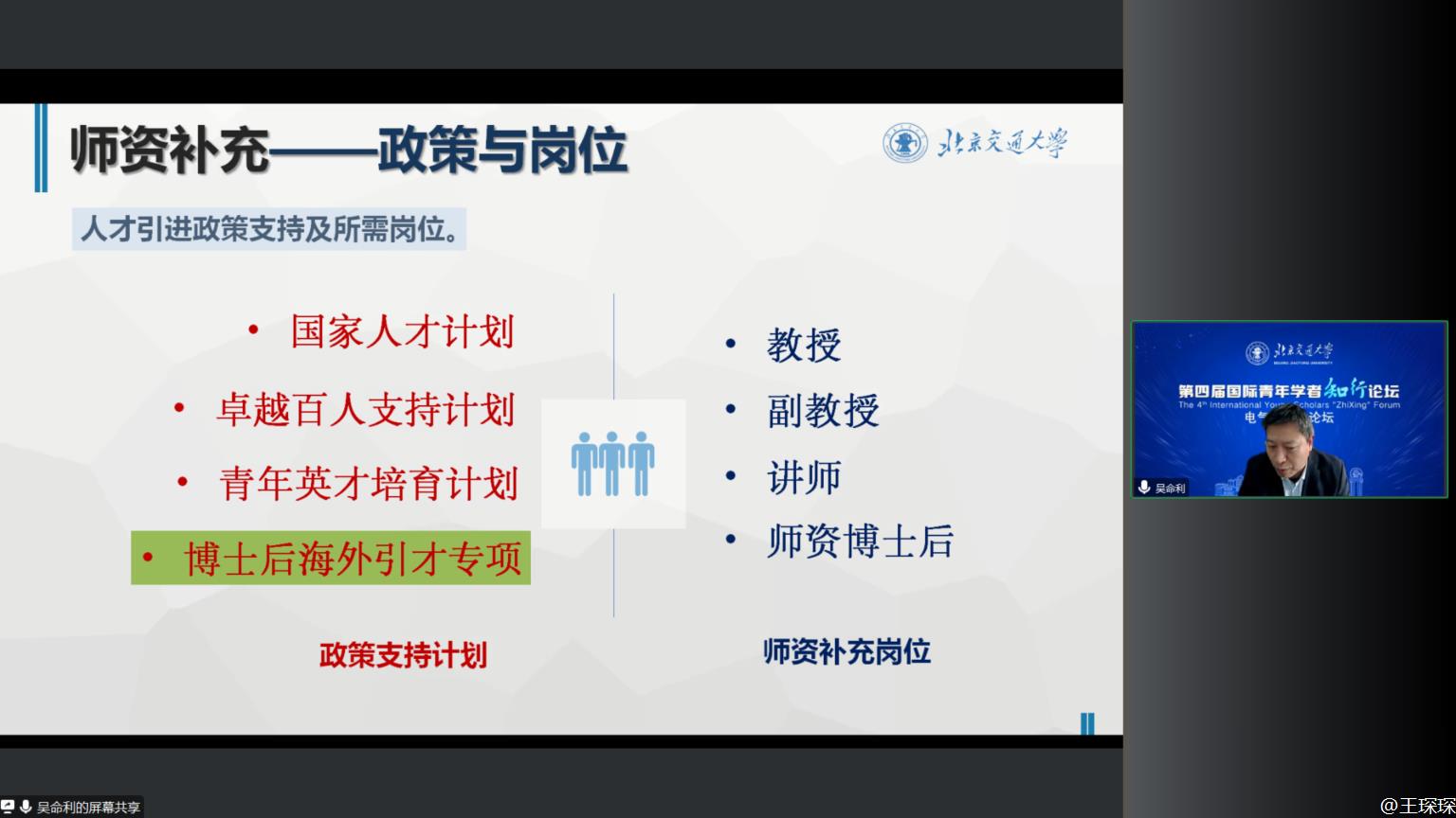 吴命利经理从学院概况、人才培养、科学研究、交流合作等方面向与会学者介绍了学院的基本情况,并详细介绍了团队补充、人才引进方案及近期海外引才专项的申报条件及支持政策。他鼓励青年学者深入了解学校、学院的人才支持培育体系,了解学院优质的资源和平台,诚挚希望优秀青年学者加入44118太阳成城集团,与学院共同提升,共谋发展。