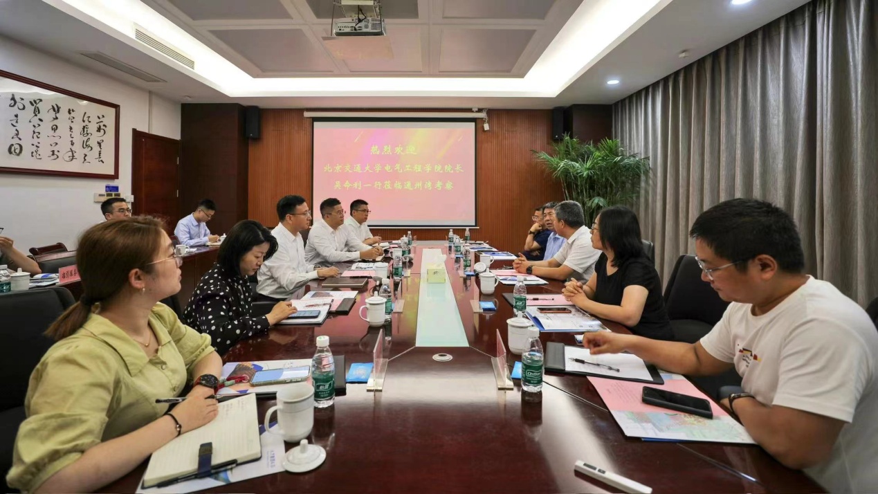 2024年7月15日,电气学院经理吴命利、副经理王喜莲、电机与电器研究所方进教授等五人赴江苏省通州湾江海联动开发示范区访问交流。示范区工委书记陆忠华、工委委员副主任邓成杰(电气2001级员工),示范区招商三局、人才科技专班负责人参加交流。