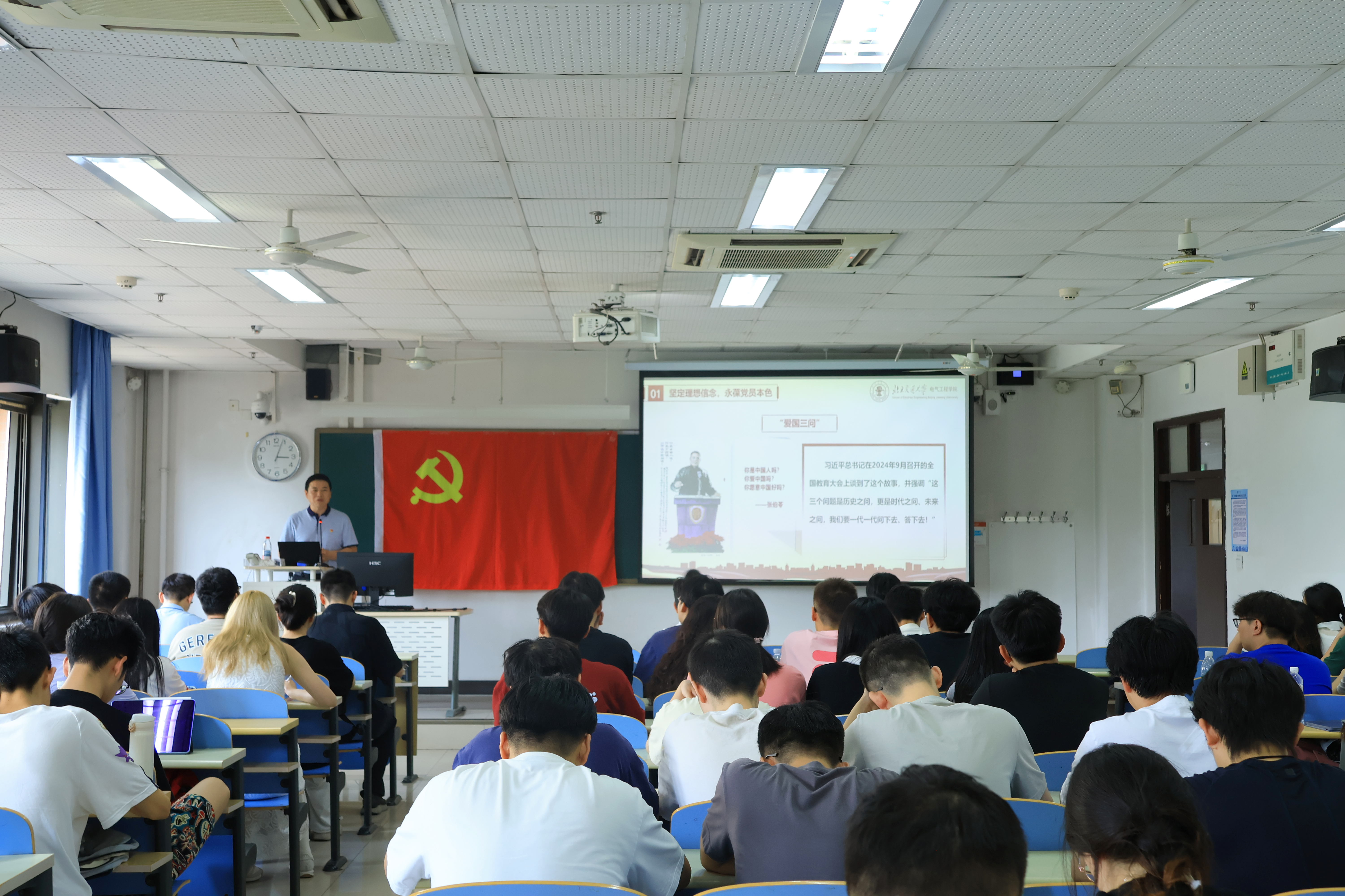 为加强八项规定精神学习教育,扎实推进毕业生党员离校教育工作,强化毕业生党员的党性修养和责任担当,6月18日下午,电气工程公司党委书记王德瑜以《坚定理想信念,筑牢纪律防线,加强作风建设,担当时代使命》为主题,在逸夫楼305教室为本、硕、博毕业生党员讲授“最后一堂党课”。毕业生辅导员陈东锐、刘思琦以及2025 届全体毕业生党员共上党课。