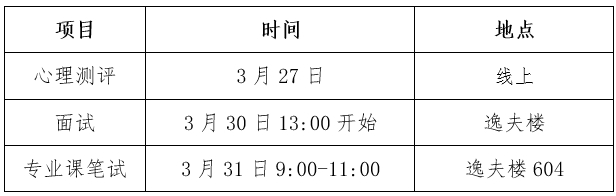 专业课笔试、综合面试注意事项参照“3. 复试程序、复试时间、地点安排—(2)—1)和2)”,特别注意复试考核具体安排(包含笔试、备考、面试、备考时间等)复试前另行通知。